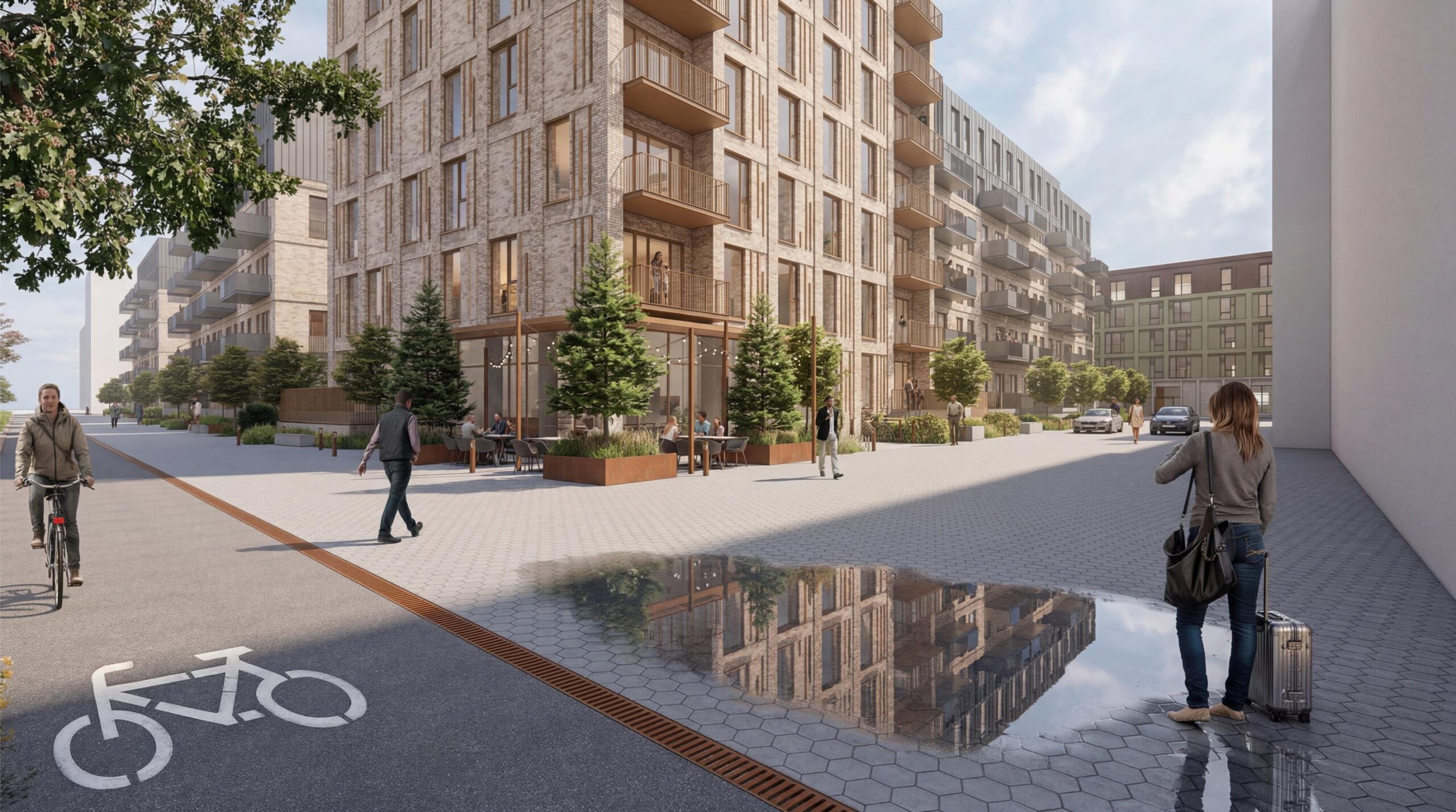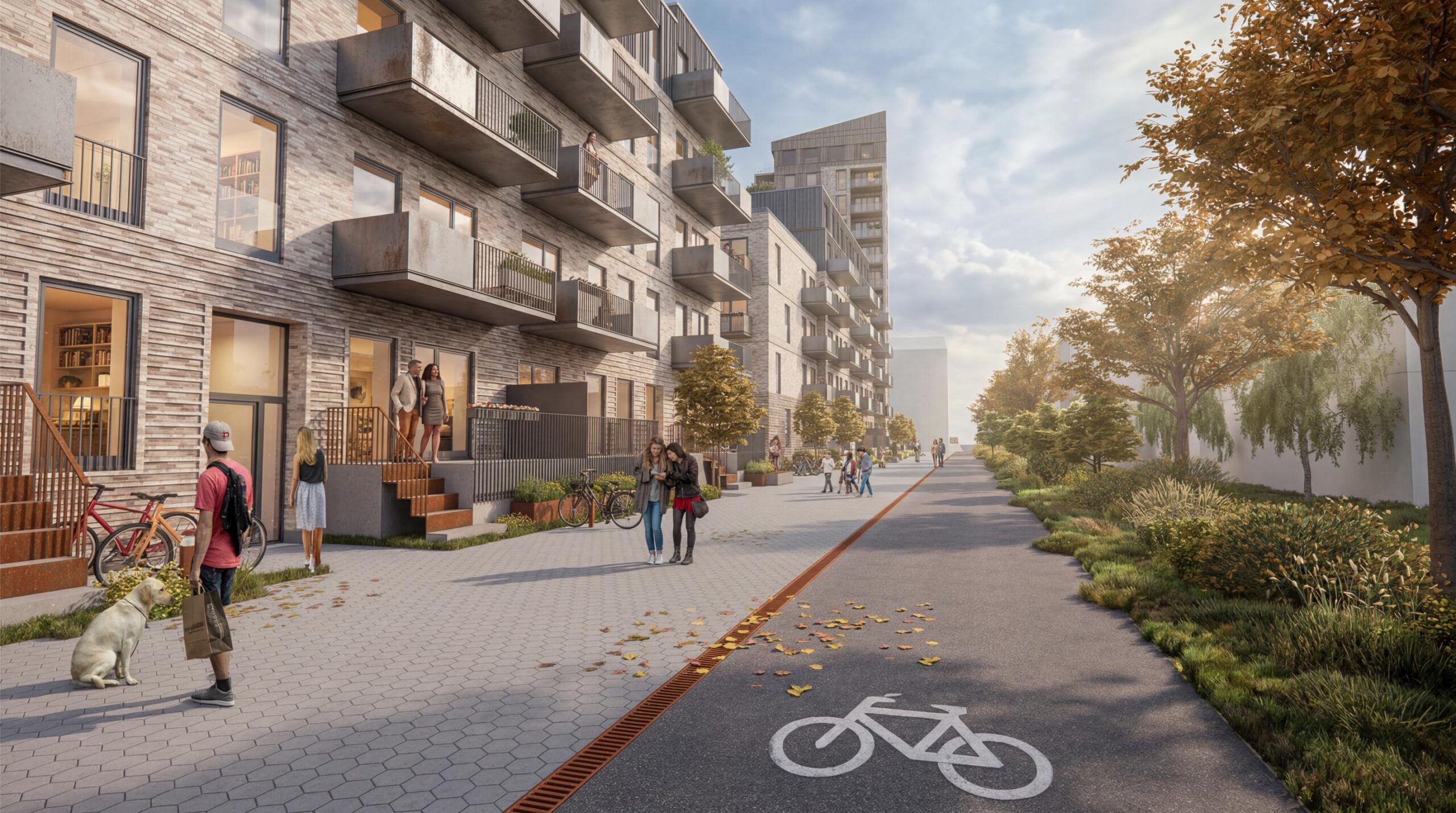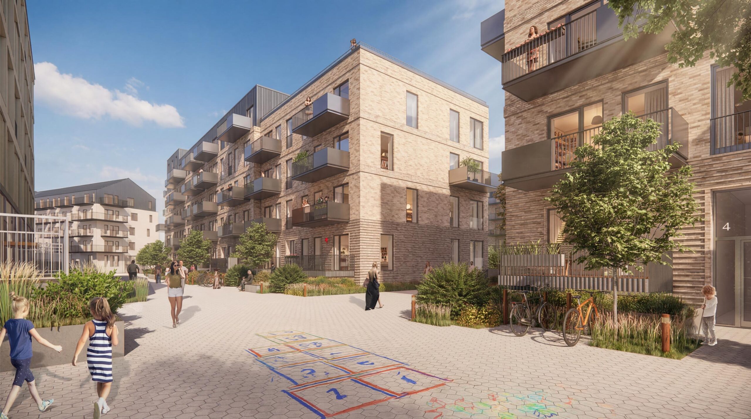 Derudover indrettes alle boliger med adgang til private opholdsarealer enten på terræn, som private haver, eller på altaner. Som supplement til de private opholdsarealer er der adgang til fællesopholdsarealer på terræn, i gården, og på fælles tagterrasser.